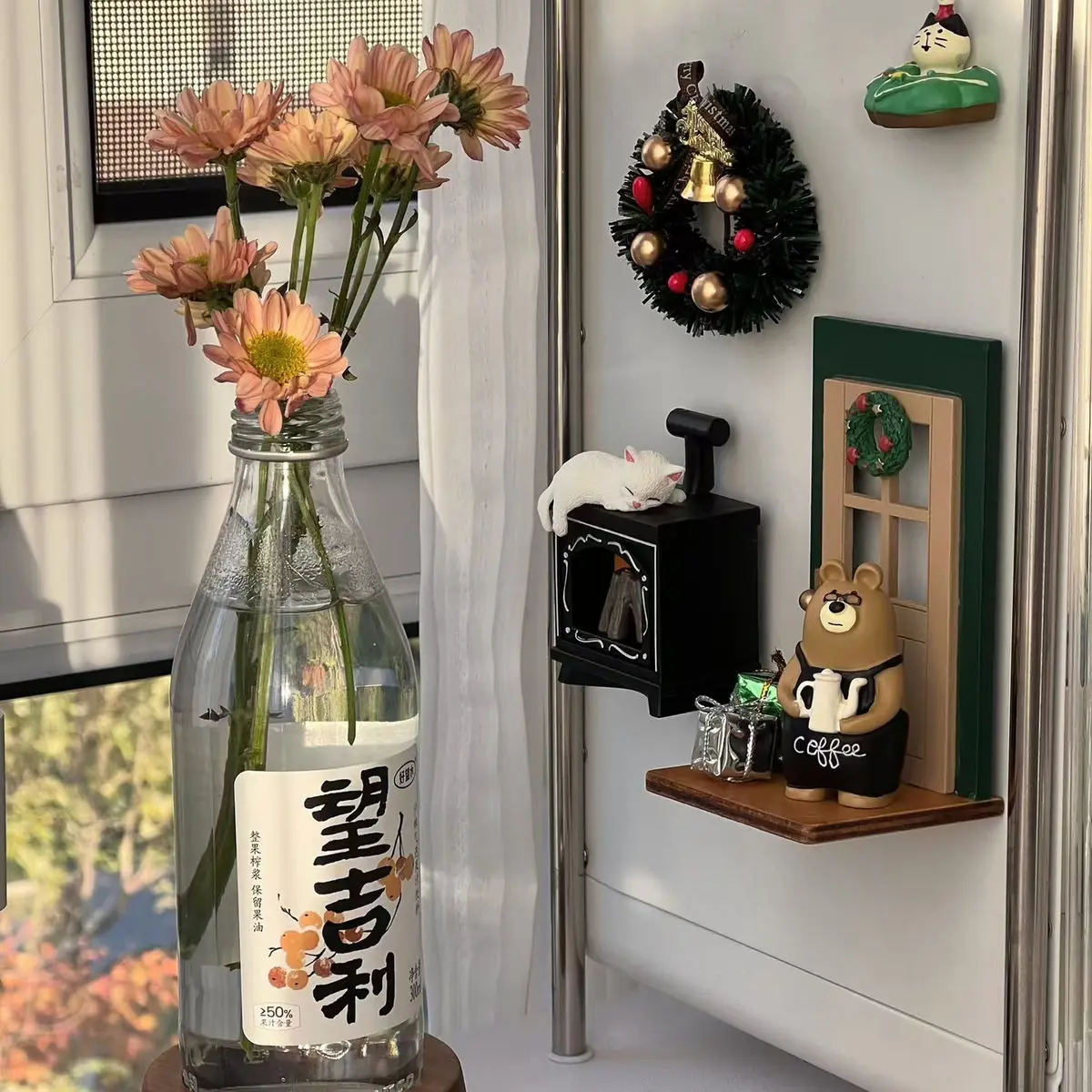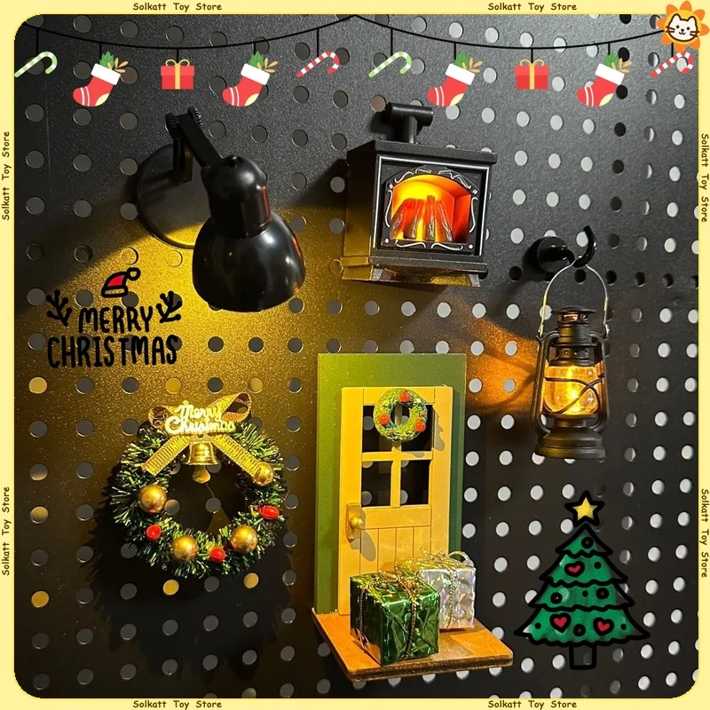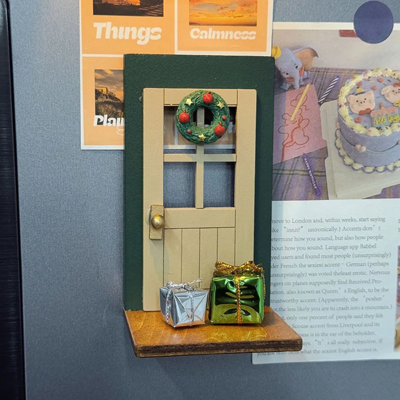 Christmas Leisure Time Wreath Retro Fridge Magnet Handheld Miniature Luminous Lamp Toy Magnetic Fireplace Gift Home Decoration