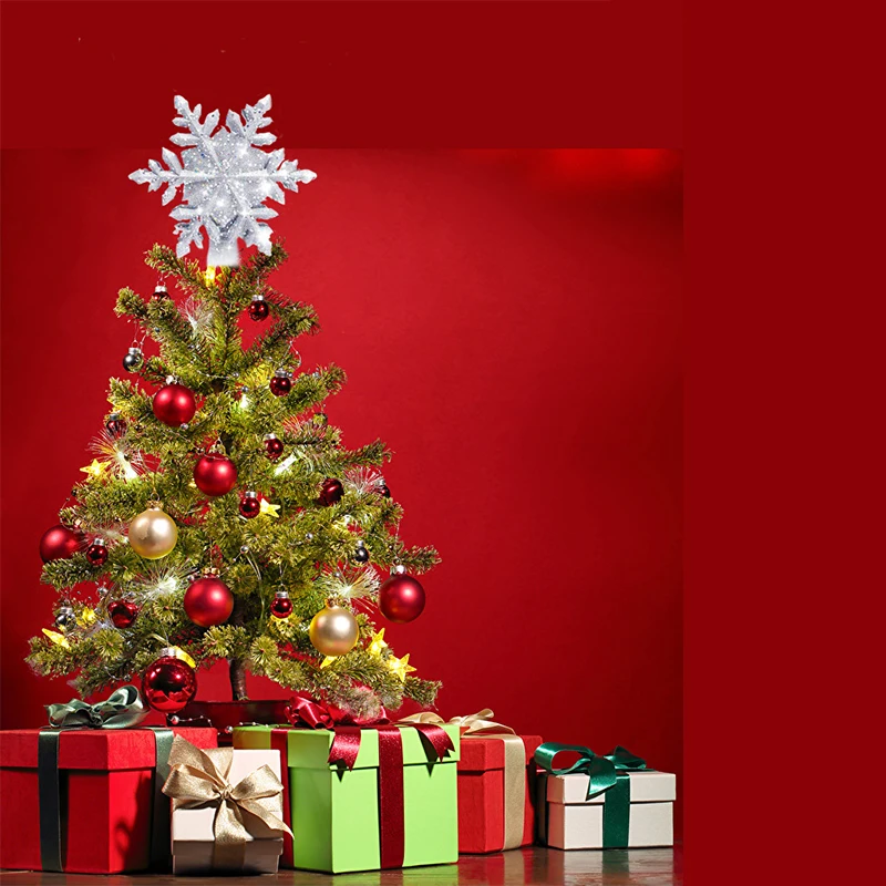Christmas tree LED snowflake projector lamp, rotating night light, dynamic snowstorm light effect for Christmas tree toppers and decorations.