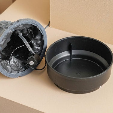 Stylish indoor nature-inspired water fountain made from durable grey polyresin & plastic — نافورة داخلية بطابع طبيعي مصنوعة من بولي ريزن وبلاستيك عالي الجودة.