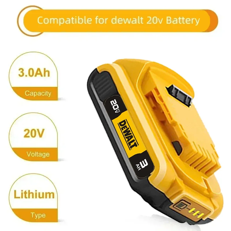 DCB200 20V battery compatible with DeWalt 18V 3Ah power tools, rechargeable electric tool, 20V 18V 3000mAh lithium batteries