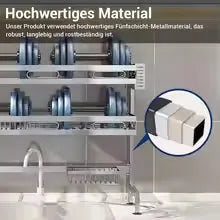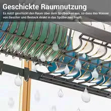 Multiple storage areas: It contains a dish storage area, a chopsticks and spoons storage area, a knife storage area, a cutting board/pot lid storage area, and a kitchen washing storage area, at the same time to meet a variety of kitchen cleaning and storage needs; and it comes with 8 small plastic hooks, you can place towels, spoons and other items as required.